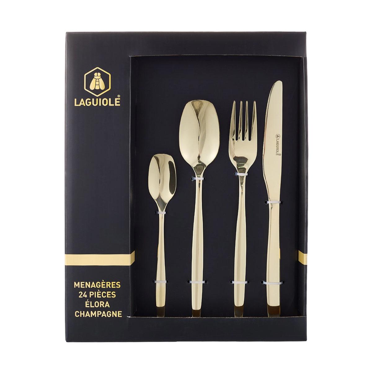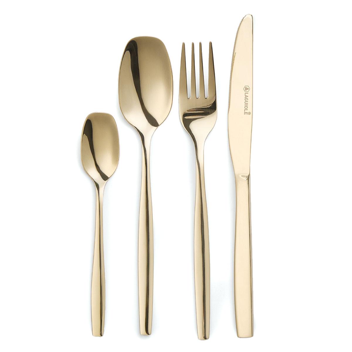 · Fabriquée en acier 18/0, finition PVD couleur champagne